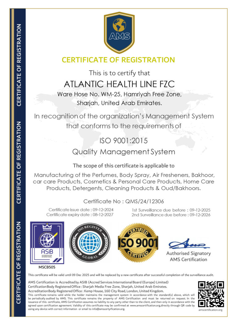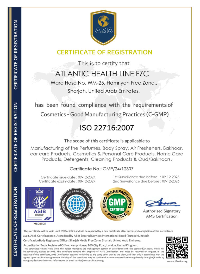 Aurium Perfumes is a division of the certified company Atlantic Healthline, which has a proven track record of successfully selling perfumes in the UAE and surrounding regions. The company holds the following certifications.